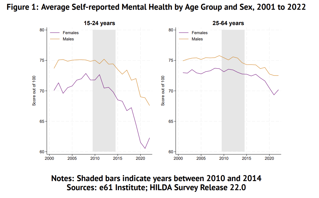 “Women and girls born since the late 1990s report much lower levels of both mental health and friendship connections than others,” e61 Institute notes.